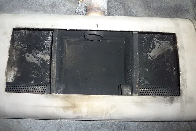 内部は3部屋構造、左右の空間にはグラスウールが入っていた