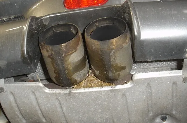 マフラーテールパイプの奥に、チラリと何かが見える。。